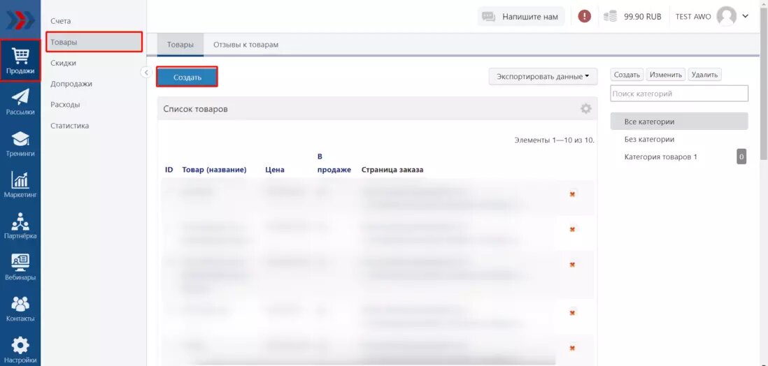 Создание товара для продажи курса