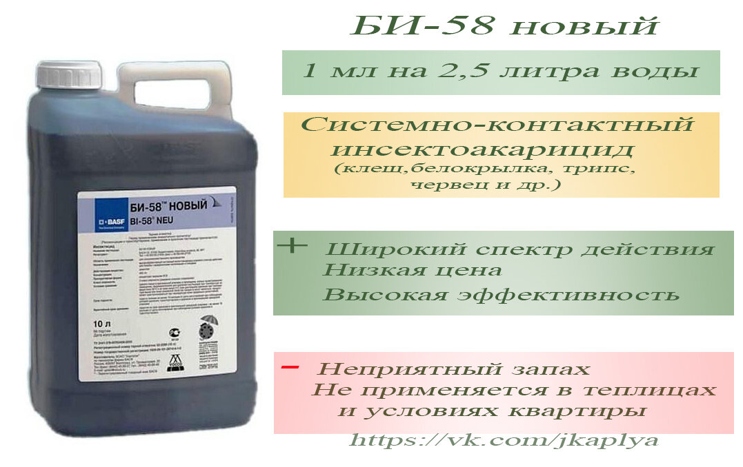 Этот препарат удобно использовать во время и после окончания летнего сезона. Думаю не стоит говорить о важности обработки растений при внесении их на зимовку в квартиру. БИ-58 - это системно-контактный инсектоакарицид, то есть от всего и сразу. Убивает насекомых попадая на них , а так же при питании, так как всасывается в зеленые части растения. Очень радует низкая цена 150р/50мл, если коллекция большая и нужно обработать все и сразу - это очень важно. Эффективность так же мной проверена. После однократной обработки вредители пропадают надолго. Пятен не оставляет. Есть и минусы , обработки нужно проводить на улице. Во первых препарат имеет очень сильный и неприятный запах, смесь дихлофоса и тухляка. Но, надо отметить, что очень быстро выветривается и в дальнейшем растения не пахнут. Является фотолитичным - теряет эффективность на солнечном свете. Обработка проводится вечером или в пасмурную погоду. Раствор нужно использовать сразу, не хранится. Обязательно нужно использовать респ