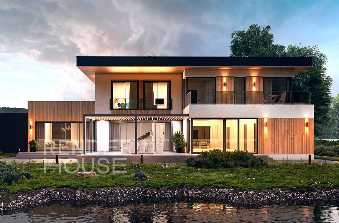 Характеристики проекта Количество этажей: 2 этажа Стиль: Минимализм Cрок строительства: 6-8 Бассейн: Да Балкон: Да Гараж: Да Котельная: Да Сауна: Да Наш типовой проект ЛЕЙКСАЙД был изначально разработан как индивидуальный — и сейчас мы готовимся к его реализации в КП «Новорижский».