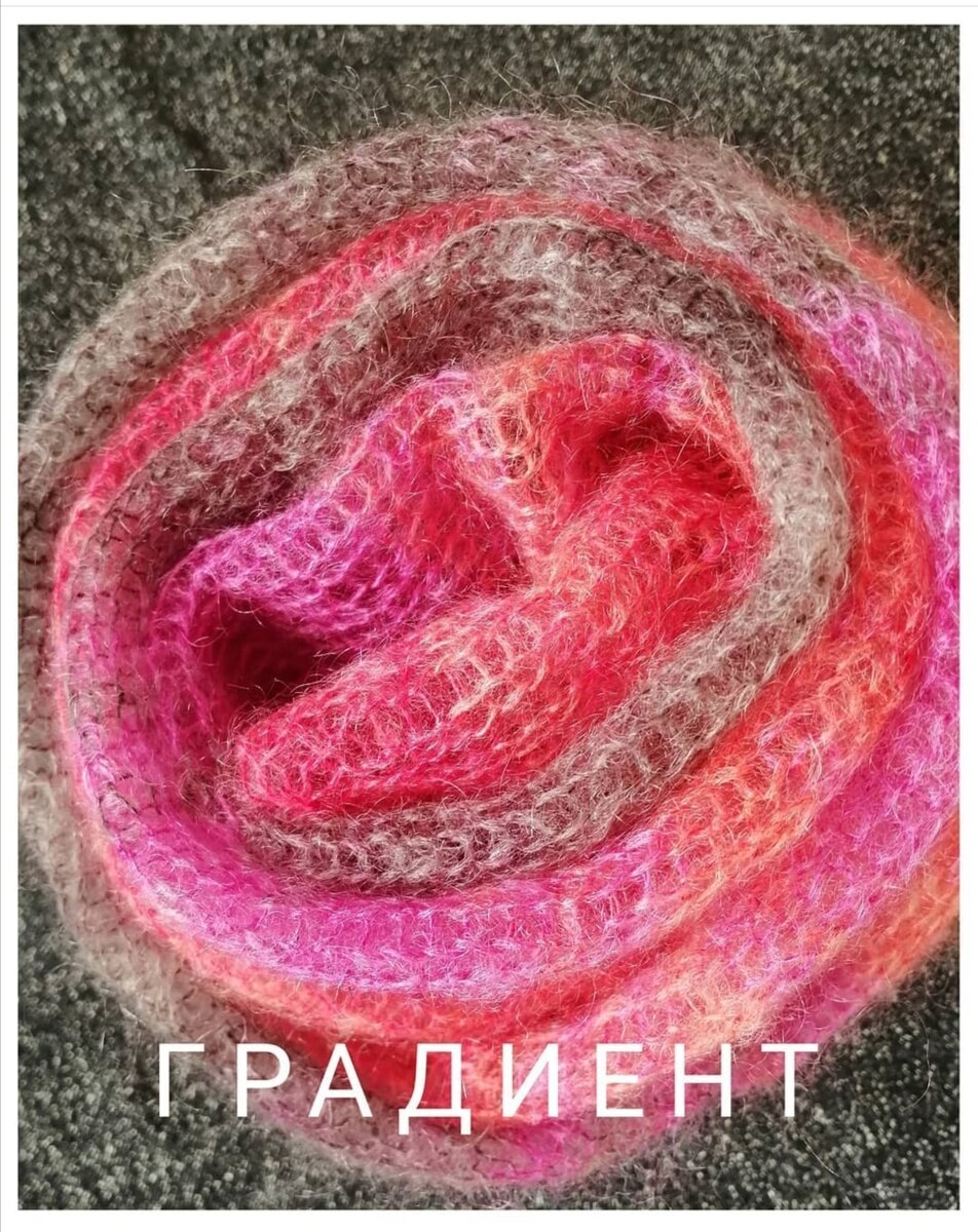 Такие загадочные и красивые слова, которые имеют отношение к окрашиванию чего либо, в том числе и пряжи. И , в принципе обозначают одно и тоже, а именно переход цвета. Только в случае с градиентом - это плавное изменение одного цвета на другой . Деграде - окрашивание с потерей яркости , переход от насыщенного цвета в более тусклый, или в черно-белую гамму. Это в теории. А на практике это родственные понятия в окрашивании. Омбре - "тенистый" по-французски , что и означает это затенение, когда цвет, как правило один, уходит в более темный. Часто, в окрашивании пряжи, применяют более простой термин - секционное окрашивание или секционная пряжа. Сегодня, мы можем увидеть в такой пряже и более резкие переходы цветов, а так же, тут могут быть более короткие секции цвета, буквально на одну петлю. Выбор такой пряжи сегодня огромный . В данном случае представлен шарф, связанный из секционного мохера на шелке от Lana Grossa. Я вообще люблю кид-мохер на шелке, за его нежность, лег