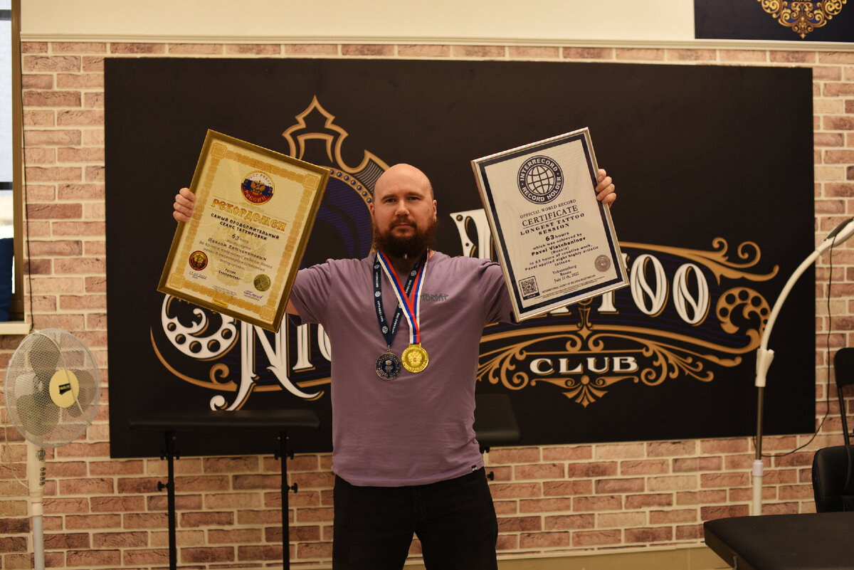 Павел Вятчанинов установил новый мировой рекорд в нанесении татуировок.