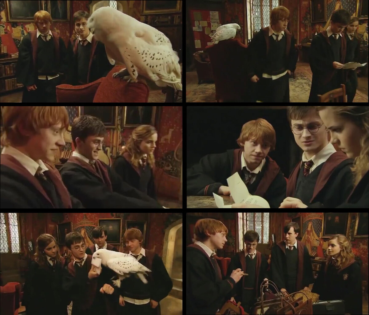 Cцены, в которых сова летит в Хогвартс, и далее — покидает Хогвартс, взяты из оригинальных фильмов.