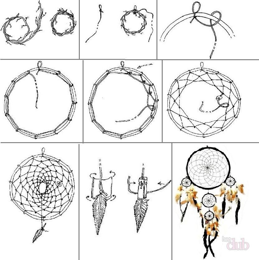 Ловцы снов — индейские амулеты, по легенде оберегающие от кошмаров и притягивающие хорошие сны. А для тех, кто не особо суеверен, они просто красивое украшение, которое можно повесить дома или носить в качестве подвески или серёжек. Сделать такой амулет будет не так уж и сложно. Нам понадобится: Основа (проволока или ивовый прут, в зависимости от выбранного типа основу можно будет дополнительно обмотать пряжей или кожей для красоты) Нить, которой мы будем плести паутинку (мы рекомендуем мулине из-за большей прочности) Украшения (бисер, подвески) Перья Алгоритм работы Для начала нужно сделать кольцо для основы. В зависимости от материала его можно обмотать пряжей или кожей или же оставить в первозданном виде. Когда основа закончена, переходим к плетению паутинки. Завязываем узел в верхней части основы, затем заводим нить внутрь круга и делаем петлю вокруг ободка. Таким образом плетём первый ряд, затем начинаем заводить нить между узлами на ободке (следите, чтобы нить находилась по це