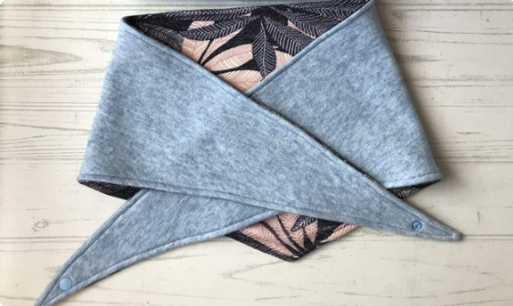 Осенью происходит глобальная смена гардероба, но кое-что можно легко обновить и выполнить своими руками. Например, такой важный аксессуар, как шарф, снуд, который максимально утеплит область шеи. А что, если такой важный аксессуар будет в виде косынки да еще на кнопке? Покажу, как за 1 час сшить косынку-шарф и быстро подготовиться к холодным дням. ПОТРЕБУЕТСЯ: Кусок трикотажа (ангорка, сандра, футер и пр.) длиной 60-70 см либо два куска по 35 см, тогда косынка будет двухсторонней шириной 140-150 см, нитки, кусочек дублерина, кнопка, ножницы. ВЫКРОЙКА: Выкройка представляет из себя треугольник с основанием 110-130 см и высотой 28-35 см с учетом припусков. Чем больше размер одежды, тем больше значение выбирайте. Если у вас нет кнопки, можно заменить на пуговицу либо удлинить концы и завязывать на узел. В последнем случае основание сделать на всю ширину полотна 140-150 см. ЭТАПЫ РАБОТЫ: 1. Раскроить два треугольника из одной ткани или контрастных. 2. Продублировать острые углы у