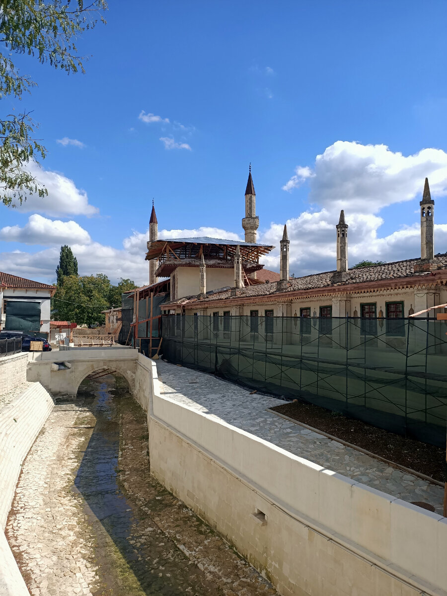 Нельзя в достаточной мере [не] похвалить в Бахчисарае так же, как и во многих татарских городах, старательного ухода за водопроводами, проведенными с далеких высот подземными глиняными трубами в общественные фонтаны, а также для непрерывного пропуска воды во дворы знатных или богатых лиц. Здесь так умело распоряжаются этими водами, что те, вытекая из каменных водоемов, поступают на поливку маленьких городских садов, а частью особыми каналами проведены в выгребы, устроенные для общественного удобства вблизи фонтанов; таким образом, эти водные струи уносят не только эти нечистоты, но и уличные в ручей Джурюк-су. Татарская полиция тщательно блюдет за исправным содержанием водопроводов на общественный счет, тогда как в других городах, как, например, в Ак-Мечети и Кафе оставили разрушаться по нерадивости и недостатку доброго желания.