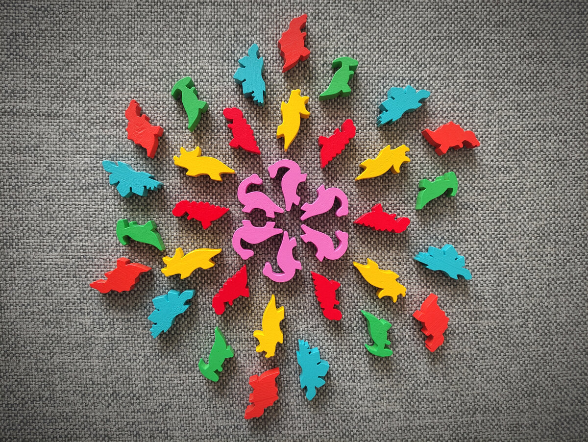 Данную настолку мы купили перед поездкой домой. Целью было найти игру, в которую можно играть с родителями, т.е. без замороченных правил, недолгую и интересную. Не буду вас долго томить и напишу, что мы не ошиблись с нашим выбором! Яркие компоненты, простые правила, интересная механика, а также приемлемая цена - это всё сочетается в прекрасной игре "Драфтозавры". Я бы смело назвала её лучшей семейной игрой 2022 года! Давайте рассмотрим её более подробно: Жанр: семейная Механика: драфт (отсюда и название) Количество игроков: 1-5 Длительность: ~15 минут Драфтозавры - это простая игра, которую с лёгкостью оценят даже самые маленькие настольщики, но при этом взрослые ни капли не заскучают! В базовый набор входят: Полноценная партия состоит всего из двух раундов, в начале которых вам будет необходимо набрать определенное количество динозавров. В процессе игры вы будете выставлять по одному ящеру на карту так, чтобы набрать наибольшее количество победных очков (ПО). Каждый вольер имеет ос