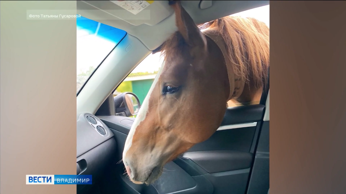 "Принцев нет, доходят только кони": владимирцев удивила лошадь, заглянувшая в салон автомобиля