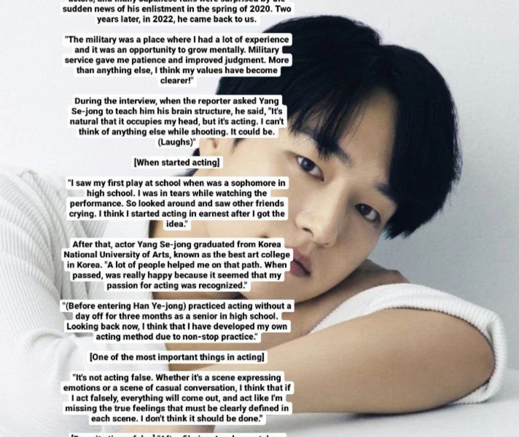 Очередной раз убедилась насколько же Ян Се Чжон умный и продуманный молодой человек, правильно в жизни нацеленный. Люблю его еще больше, хотя куда уж больше. 🤣🙈 Итак, после возвращения из армии и достаточно долгого пребывания в тени, он наконец начал активно действовать. Сейчас Се Чжон снимается в дораме на Netflix в паре с Сюзи "Ли Дуна", основанной на популярном вебтуне, которая выйдет в начале 2023 года. Скоро появится на страницах корейского журнала Мэри Клер за октябрь 2022 года. А до этого случилась его первая после армии профессиональная фотосессия и интервью для Японского журнала "BAILA Homme". Актер Ян Се Чжон вернулся с военной службы в этом году (2022). Се Чжон, у которого много поклонников в Японии, в свое время быстро поднялся на лидирующие позиции в Японии, обогнав много более именитых корейских звезд. И многие фанаты были удивлены и расстроены его внезапной новостью о зачислении в на воинскую службу весной 2020 года. И вот, два года спустя, он возвращается в Японию. ЯС