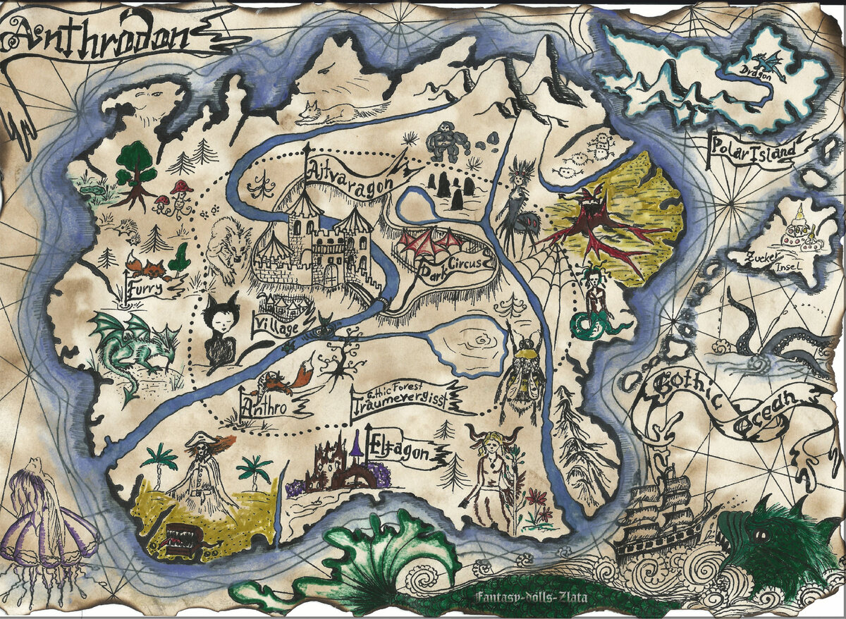 Представьте, что произойдет, если создавать не просто кукол, а целый кукольный мир? Ведь так намного интереснее! "Anthrogon" - это целый мир авторских кукол ручной работы художника - кукольных дел мастера "Fantasy-dolls-Zlata". Этот мир представлен в виде сайта (fdzlata.com) с картами и кукольными существами. На карте можно увидеть расположение всех необычных мест. Мир "Anthrogon" изображен как большой материк окруженный Готическим океаном "Gothic Ocean", а рядом находятся острова. В водах Готического океана водятся волшебные существа, которых в скором времени автор воплотит в кукол! В центре материка расположен готический город под названием "Ajtvaragon". Он окружен огромной стеной и войти в город можно только через главные ворота. В стенах города можно увидеть Темный цирк "Dark Circus", а совсем скоро в городе появятся все самые интересные места, о которых вы узнаете позже. Житель города "Ajtvaragon" девушка-ворона "Crow Girl Ravena". Обитатель темного цирка - Розовый монстр "P