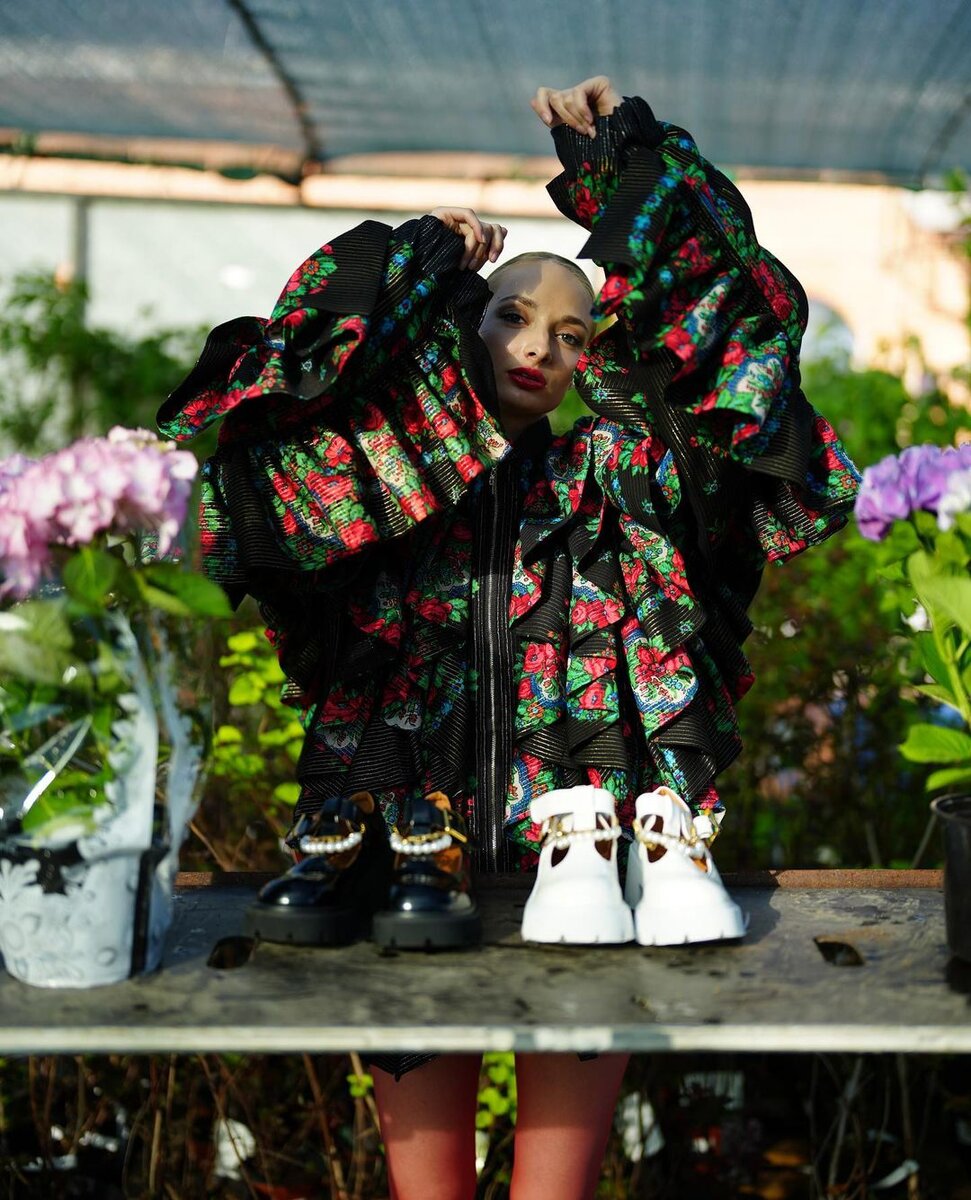 Саша Гапанович — дизайнер из Мурманска и основательница одноимённого бренда, которая создаёт очень необычную женскую одежду. Для её работ характерны смешение цветов и принтов, крупные формы и их деформация, эксперименты с тканями. Так, она перерабатывает и переосмысливает старые вещи — например, у Саши можно купить блузку, изготовленную из винтажных павлопосадских платков. Читайте также: Утепляемся: 5 идей для осеннего гардероба от локальных брендов «Либо покупаешь, либо нет»: как работает петербургский бренд люксовых авангардных сумок «Я не пашу по 12 часов на заводе»: основатель бренда вязаной одежды — о ручном труде и стереотипах #бизнес #одежда #стиль #мода #лук #fashion #дизайнер