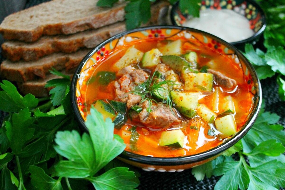 Это очень распространенное на Кавказе блюдо готовят по-разному. Расскажу, как делаю я :) Поехали! Для приготовления шурпы нам понадобится: Говядина (баранина) – 500 грамм. Картофель – 6 средних картофелин. Сладкий перец – 2 шт. Помидоры – 2 шт. Томатная паста – 2 столовые ложки. Морковь – 1 крупная. Лук – 1 крупная луковица. Зелень – любая по вкусу 50 гр. Чеснок – 3 зубчика. Соль, перец – по вкусу. Растительное масло для жарки. Сначала все подготовим. 1. Мясо нарезаем небольшими кусочками. 2. Лук нарезаем мелким кубиком. 3. Перец нарезаем мелко. 4. Морковь нарезаем соломкой. 5. Картофель чистим, моем, нарезаем кубиками среднего размера, снова промываем, чтобы удалить с поверхности крахмал. 6. Чеснок давим и мелко рубим (можно сделать непосредственно перед добавлением). 7. Зелень мелко нарезаем. Теперь готовим. 1. Наливаем в сковороду масло, обжариваем лук до золотистой корочки. 2. В лук кладем мясо. Через несколько минут перемешиваем, даем мясу хорошо обжариться. Нагрев должен быть с