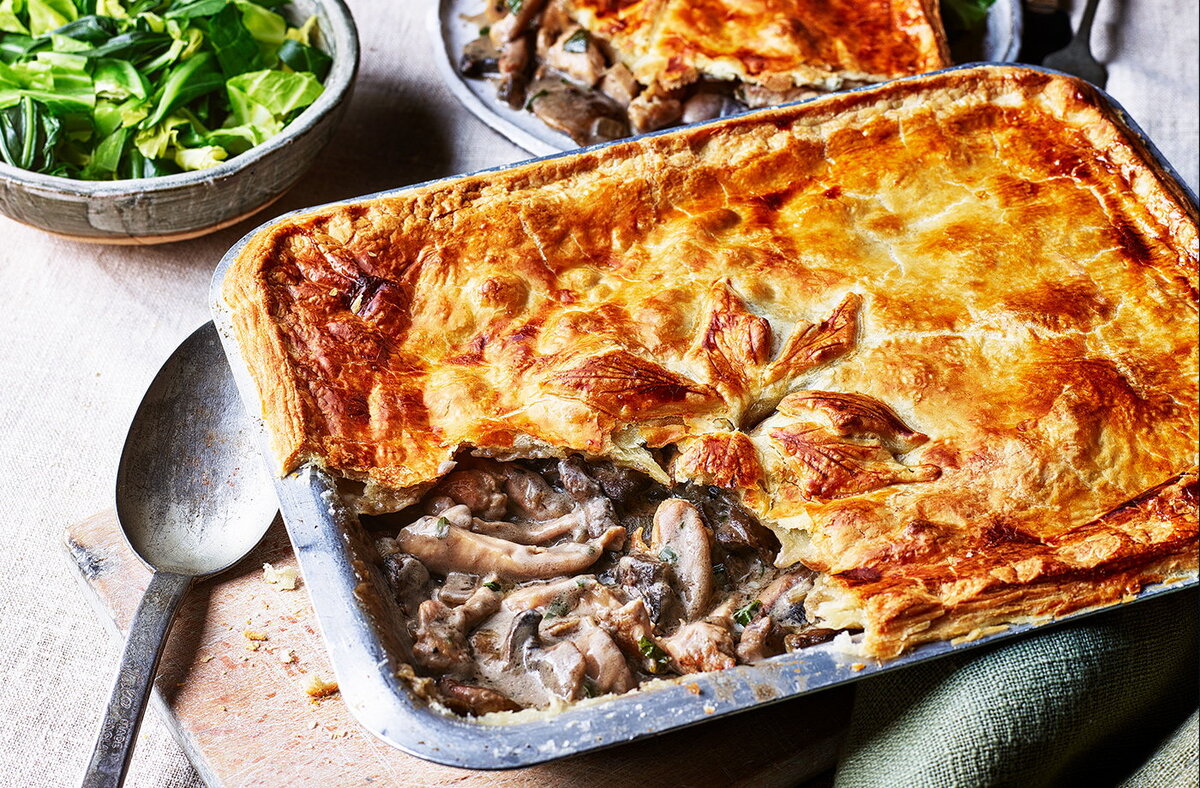 Пирог с курицей и грибами – классика для обеда. Трудно пройти мимо куриного пирога, когда он так выглядит и имеет такой приятный вкус. Это золотистое тесто, шелковисто-гладкий соус и нежные куриные бедра делают его изумительно сочным. Подавайте пирог с тушеной зеленью для придания цвета и свежести. ИНГРЕДИЕНТЫ 600 г филе куриных бёдрышек без кожи, нарезанных полосками шириной 1 см, 2 зубчика чеснока (раздавить), 2 ст. л. муки, 1 кубик куриного бульона с пониженным содержанием соли, доведённый до 300 мл, Читайте также: Готовим окуня: сытно и вкусно ПРИГОТОВЛЕНИЕ СОВЕТ: посыпьте оставшееся неиспользованное тесто нарезанными фруктами, а затем запеките до золотистого цвета, чтобы быстро приготовить сладкое лакомство. Подготовлено Натальей Соловьёвой по материалам realfood.tesco.com #рецепты_bobrdeti #еда #кухня #кулинария