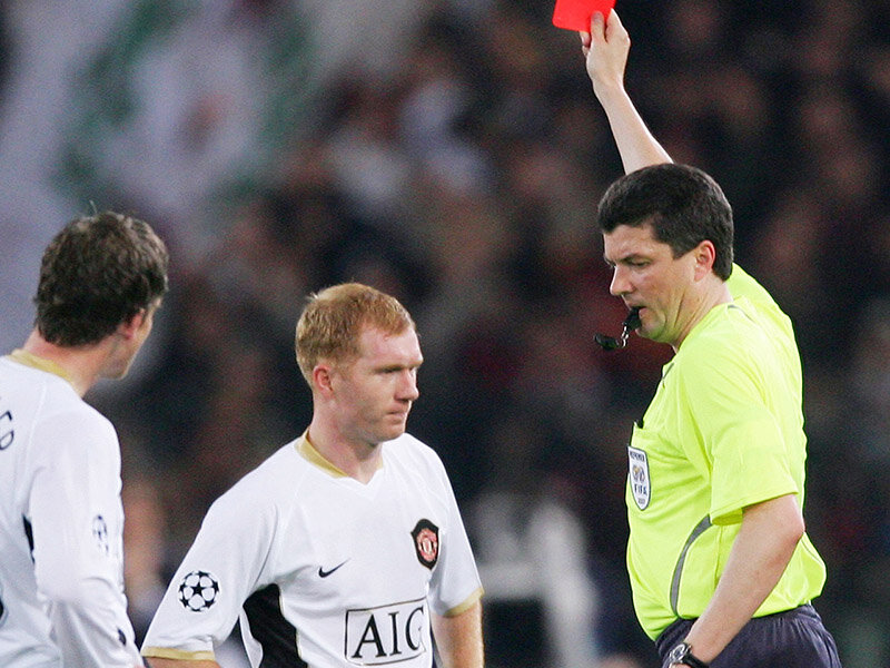 Посчитали и удаления, и предупреждения. Все данные - на начало этого европейского сезона. 20. Пол Скоулз – 173 Открывает двадцатку легенда «МЮ»: у Скоулза за карьеру было 10 красных и 163 жёлтые карточки. 19. Янник Каюзак – 173 Этот французский защитник выступал за «Бастию», «Тулузу» и «Ланс», за свою карьеру его 19 раз удаляли с поля и выписали 154 жёлтые карточки. 18. Даниэле Де Росси – 175 Король подкатов Де Росси 15 раз в карьере получал красную карточку, и ещё 160 раз судья наказывал его жёлтой. 17. Гари Медель – 177 На счету чилийца, игравшего в «Севилье» и «Интере», 19 красных карточек и ещё 158 жёлтых. 16. Дженнаро Гаттузо – 179 Гаттузо выгоняли с поля всего восемь раз, зато по жёлтым он серьёзно опережает всех, кто стоит в этом списке выше – предупреждали его 171 раз. 15. Жерар Пике – 184 Судьи удаляли Пике 12 раз, ещё 172 раза защитник получал жёлтую карточку. 14. Серхио Бускетс – 185 Всего лишь два раза за карьеру Бускетс получал красную карточку. Нарушений на жёлтую у него