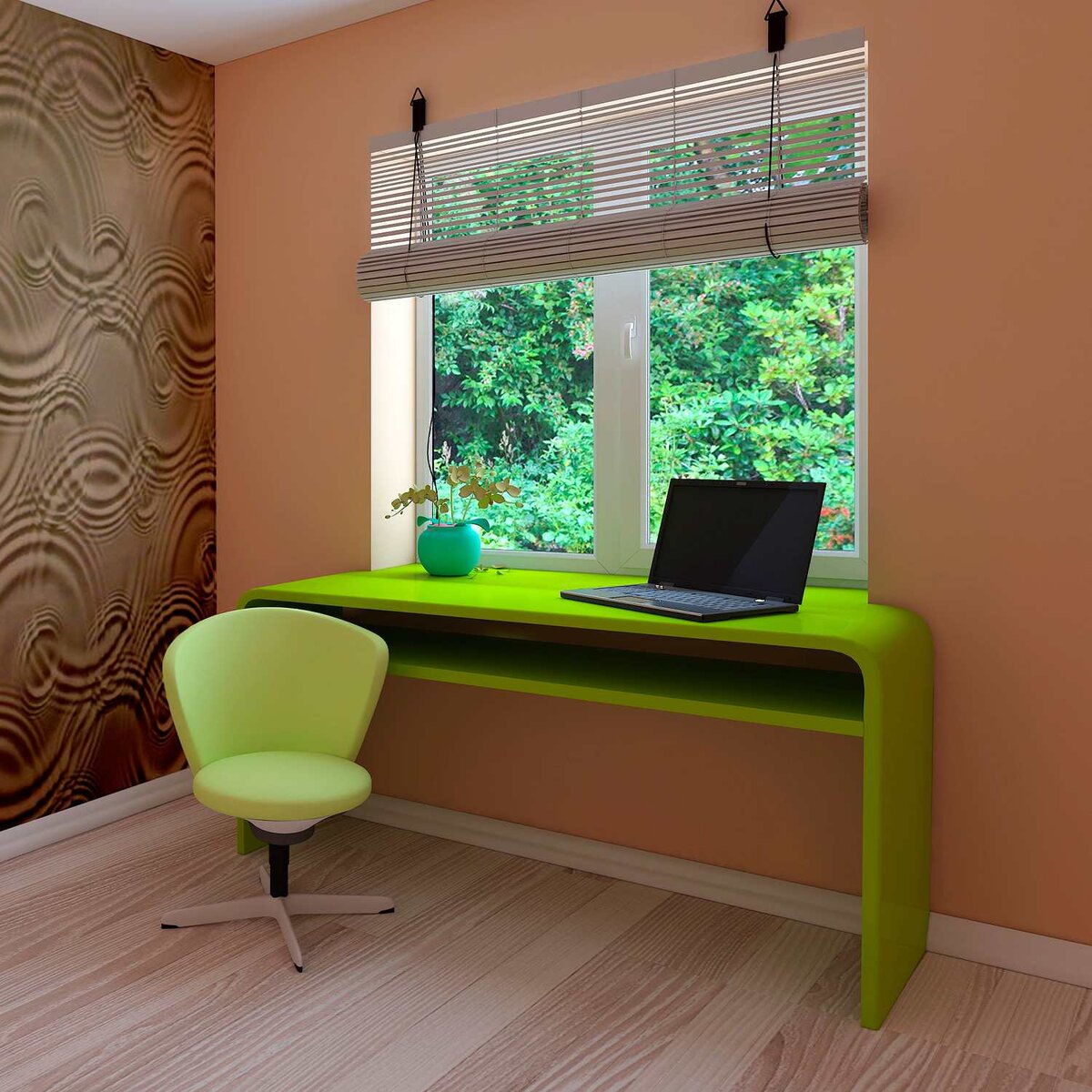 - Пластик - бюджетный, но недолговечный материал. Подойдёт на роль рабочего стола в гостиной или спальне. Производители предлагают разнообразные цветовые решения, благодаря которым рабочая зона станет ярким акцентом в комнате.