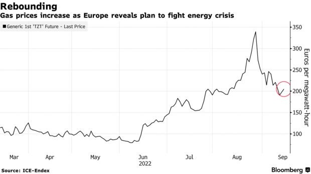 Автор - basil10 # Цены на природный газ в Европе подскочили после того, как Европейская комиссия обнародовала план энергетического вмешательства, который, по словам ее президента, может привлечь более 140 миллиардов евро (140 миллиардов долларов) для потребителей, ограничив доходы производителей электричества с низкими издержками. Эталонные фьючерсы выросли на целых 6,9%, на следующий день после закрытия на 4,2% выше. Власти разрабатывают меры, призванные обуздать беспрецедентный энергетический кризис, который подпитывает инфляцию, наносит ущерб промышленности и ставит страны на грань рецессии. Европейская комиссия, исполнительный орган ЕС, предложила ограничение на доходы компаний, которые производят электроэнергию по низким издержкам, а не дорогой газ. Он также предлагает временный налог с производителей ископаемого топлива. «В нашей социальной рыночной экономике прибыль это хорошо», - заявила президент Урсула фон дер Ляйен в среду в Европейском парламенте. «Но в наше время неправил