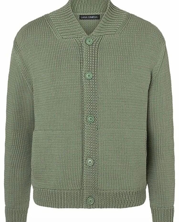 Наткнулась на описание мужской куртки с карманами, связанной спицами. Как по мне, так это отличный базовый кардиган унисекс. Надо вязать!