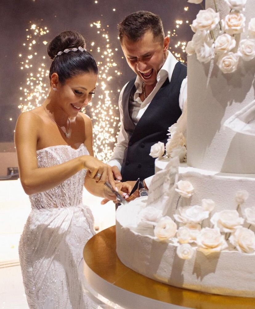 А самая красивая свадьба, по мнению интернета, была у Ксении Дукалис. Два шикарных дизайнерских платья невесты, торт с необычными фигурками, образы гостей и бутылки шампанского вместо залпов салюта. Но главное, что у молодожёнов влюблённые глаза!