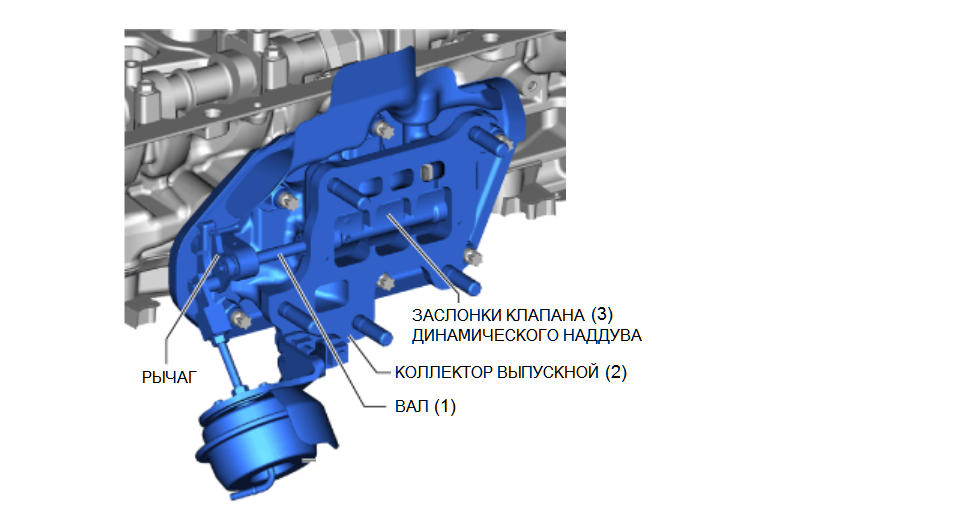 Эта проблема может быть вызвана тем, что вал (1) и/или корпус клапана системы динамического наддува в выпускном коллекторе (2) деформированы или имеют неправильную форму. Вследствие этого заслонки клапана (3) упираются в корпус, и их заклинивает в закрытом состоянии при горячем состоянии двигателя.