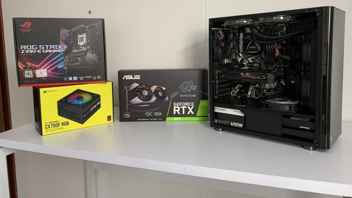 В качестве видеокарты лучший выбор на сегодня — GeForce RTX 3070 Ti. В разгоне она догоняет RTX 3080, а 8 гигабайт памяти пока хватает для разрешений вплоть до 1440p. На сентябрь 2022 года средняя цена на RTX 3070 Ti составляет около 60 тысяч рублей.