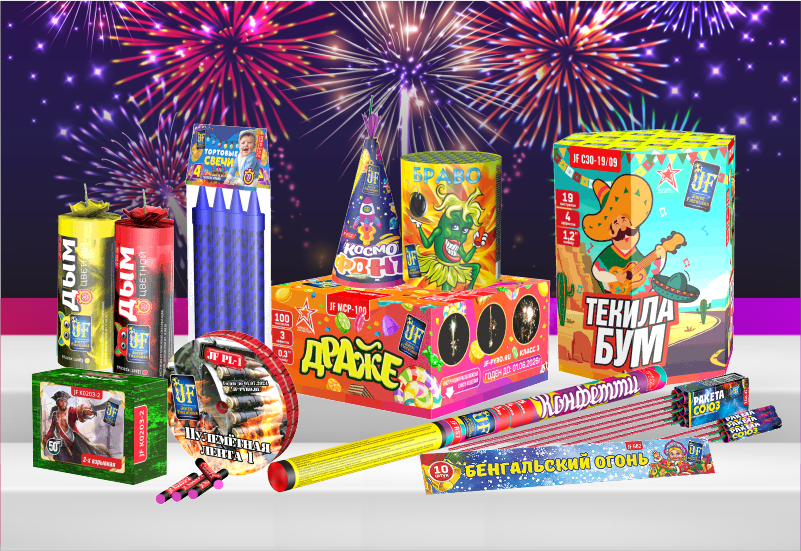 Выбираем фейерверк! Как выбрать именно тот самый яркий и красивый фейерверк для своего праздника? А знаете ли Вы, чем ракета отличается от батареи салютов ил в чем разница между веерными и обычными салютными установками? Вся пиротехника делится на категории: Чтобы правильно выбрать салют на мероприятие, нужно сначала определиться какой эффект вы хотите увидеть. Эффекты бывают разные: Также важно учесть высоту залпов, класс пиротехники и калибр. Обычно все данные указаны на упаковке товара. Виды фейерверков Раскрываются множеством ярких искр, могут сопровождаться треском. Бывают бытовые и сценические. Представляет собой длинную картонную трубку с фитилем для поджигания заполненную чередующимися слоями медленно горящего состава. Заряд поочередно выстреливает вверх звездами, искрами, короной с россыпью искр. Работа римских свечей обычно дополняется оригинальными спецэффектами: мерцание, свист, хлопок. Всеми любимая забава! Петарды не взлетают, а срабатывают на земле. Привычный спец
