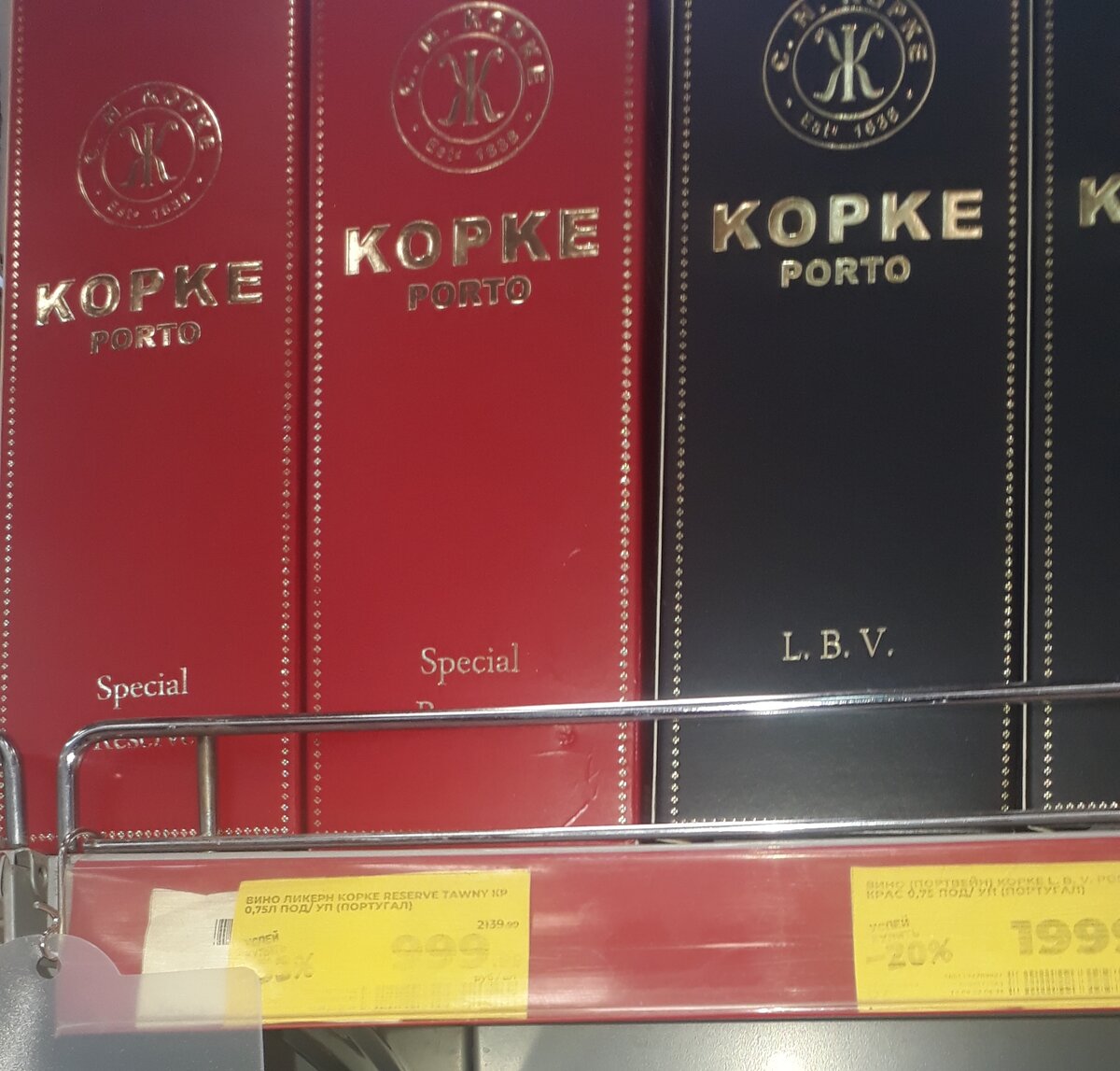 Скидки на крепкие напитки в супермаркетах Магнит у дома что-то пока не доходят до нас. Пришлось заехать в Магнит "Семейный"(написано на вывеске магазина) в Московской области. Он же - бывший Гипермаркет Магнит. Он же - Магнит "Экстра", как он указан на некоторых онлайн-картах и в навигаторах. Начнём с Портвейнов : Kopke Tawny Special Reserve - португальский портвейн от хорошего производителя, со скидкой более 50% выходит 999 рублей за бутылку в подарочной коробке. Хорошая цена получается, в других местах и интернет-магазинах этот портвейн стоит более двух тысяч рублей. Рядом стоит портвейн Kopke Late Bottle Vintage за 1999 рублей. Скидка поменьше, всего 20%, но цена более-менее нормальная. Warre's Tawny & Ruby - ещё портвейны из Португалии с кидками в 51%. Здесь цена получается не самая интересная, 929 рублей. Хотя наверное может и неплохо, при нынешнем ценообразовании. Арарат Ахтамар 10 - армянский коньяк со средней выдержкой в дубовых бочках около 10 лет. В некоторых Магнитах у дома