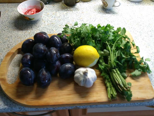 И так, соус сливовый. Слив и лимонов у нас в садах растет немеряно. По этому идём в сад, и собираем сливу с лимонами, прочими дивными травами.