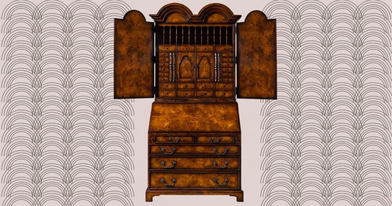 В данном случае перед нами секретер, выполненный по образцам английской мебели времен королевы Анны, этакий письменный стол (там есть откидная доска для письма стоя), но со множеством потайных ящичков и секретных отделений. Отсюда и название — от французского слова secrete, «тайный». Это XVIII века история — шпионские страсти, любовные письма и прочее. Поэтому столько колонн, украшений и деталей — за каждой может оказаться секретный механизм, открывающий ящик, или потайное отделение.