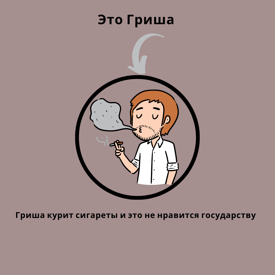 - Допустим Гриша заядлый курильщик и покупает каждый день пачку сигарет за 100 рублей