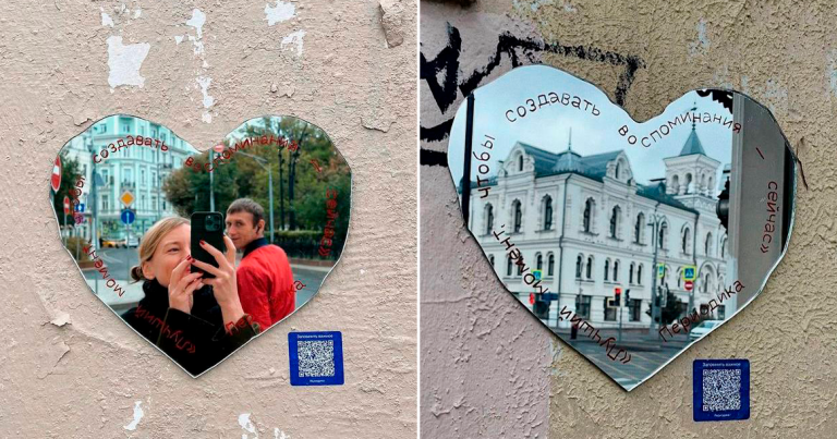 «Наблюдаю вчера, сегодня и, надеюсь, понаблюдаю еще какое-то время, как идет человек серым дождливым утром, спешит, но замечает боковым зрением что-то, останавливается и улыбается своему отражению в сердце», — объяснила смысл акции основательница «Периодики» Варвара Веденеева в своих соцсетях.