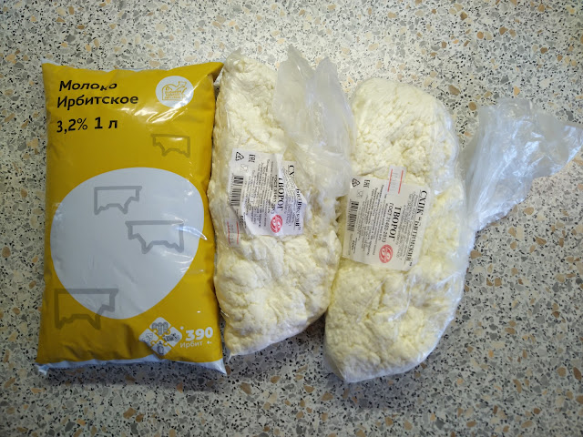 Но оставим лирику, наша задача сделать что более менее съедабельное. Нужно приготовиться к небольшим тратам. Так как коровы у меня нету, на балконе места не хватает, приходится молочные составляющие брать в магазине. Внутренне подготовившись, дуем туда на максималках, и покупаем молоко, и творог (желательно развесной). Чем больше жирность молочных продуктов, тем лучше. Больше нам ни чего не понадобится, ну кроме конечно рук, и кастрюли. ещё конечно желательна приспособа для нагрева, газ там, электроплита, или мультиварка. Выбор большой, даже на костре можно сварганить.