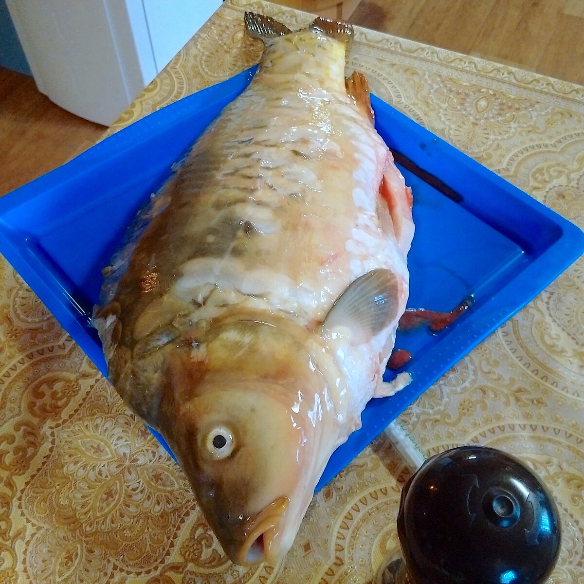 Берем карпа ... потрошим ... Филируем ... Филе аккуратно надрезаем крест-накрест ... и обваливаем в кукурузном крахмале Пока филе отдыхает ... делаем соус Обжариваем чеснок ... Добавляем ложку томатной пасты ... Шаосинское вино, соевый соус и кисло-сладкий ... Доводим до кипения ... Варим рис ... Пришла очередь карпа ... обжариваем в масле до образования золотистой корочки ... Поливаем соусом ... Украшаем кинзой ... Наслаждаемся! Приятного аппетита! Поделитесь, как вам такой формат подачи рецептов?