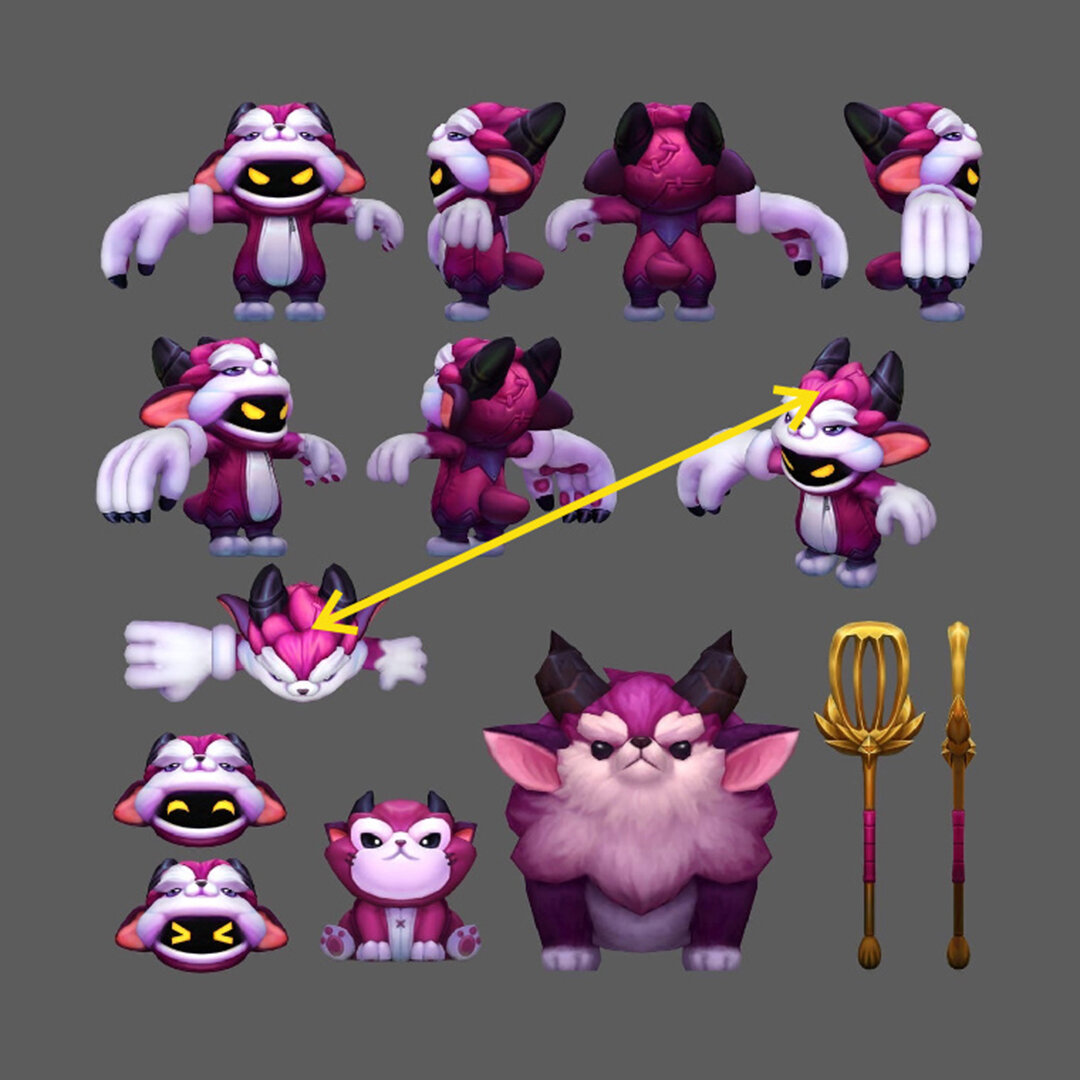 В поиске нашли картинки с этим героем, скорее всего это какой-то фанарт, построенный в 3D. Есть ряд неточностей по сравнению с оригинальными скринами, но зато есть возможность рассмотреть кое-что более детально, например, пряди на голове, рога или кисти рук и т.д. При одинаковой длине рук, кисти имеют разный размер. Договорились, что обе кисти будут сжаты в кулак, «навсегда», без возможности их распрямить. Причем левые пальцы должны быть прихвачены таким образом, чтобы была возможность вложить в кисть что-то вроде лопатки для приготовления пищи, которая является частью образа. Лопатка эта очень сложной формы, и сама по себе состоит из множества мелких деталей. Конечно, можно, ее повторить буквально, какой-нибудь 3D печатью, но боюсь, что стоить это будет как крыло от самолета. Поэтому решили, что заказчик самостоятельно найдет какую-то готовую лопатку подходящего размера. Правда есть ограничение, на диаметр ручки. Он будет зависеть от размера левой кисти, которая у нас получится в итог