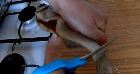 Здравствуйте, уважаемые подписчики моего канала. Вы, наверно, знаете, что одно и то же действие можно выполнить по-разному. Это касается всех областей жизни. В одном случае это действие займет пять минут, в другом – целый час. И это не зависит от исполнителя данного действия. Просто существуют различные способы облегчить нам жизнь. Некоторые из них сейчас называют лайфхаками. Я хочу рассказать об одном из них. Многие рыболовы любят не только сам процесс рыбалки, но и то, что за ней следует, а именно, употребление улова в пищу. Речь пойдет о вяленой рыбе. Хорошо завяленная рыба не только вкусна, но и полезна. Но многим не нравится процесс чистки вяленой рыбы от шкуры с чешуей, в частности, из-за того, что при чистке образуется много мусора. Как его ускорить и облегчить? Я делаю это с помощью ножниц. Они должны быть достаточно мощными, а никак не маникюрными. Я выполняю следующие действия: Отрезаю рыбе хвост. Срезаю самый верхний слой спины вместе со спинным плавником. Начинаю от хвосто