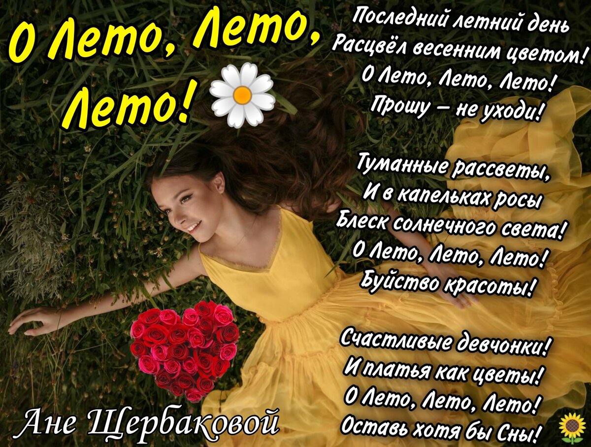 Последний летний день Расцвёл весенним цветом! О Лето, Лето, Лето! Прошу – не уходи! Туманные рассветы, И в капельках росы Блеск солнечного света! О Лето, Лето, Лето! Буйство красоты! Счастливые девчонки! И платья как цветы! О Лето, Лето, Лето! Оставь хотя бы Сны! 🌹🌼🌺🌻🌷🏵️🌸🌄 Ане Щербаковой ❤️❤️❤️💐😘 . . #аннащербакова #александратрусова #камилавалиева #алиназагитова #евгениямедведева #этеритутберидзе #фигурноекатание #аленакосторная #стихи #дарьяусачева