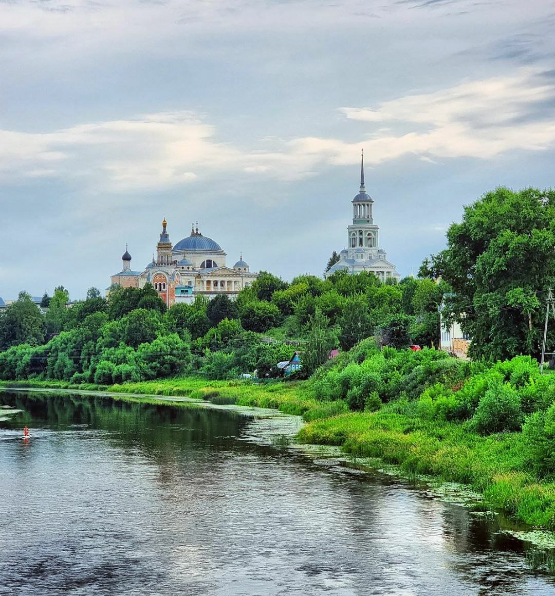 Нынешние архитектурные памятники города сохраняются с 17 века. Ну, как сохраняются - ветшают потихоньку. Больше всего здесь, конечно, церквей и монастырей - около 2 десятков на 45 тысяч населения. Самый величественный - Борисоглебский монастырь (фото 1), и его даже реставрируют. Немало осталось и купеческих домов 19 века. Всё это разбросано по обоим берегам реки Тверцы, протекающей через город, поэтому самые фотогеничные виды открываются с двух центральных городских мостов, один из которых - пешеходный.