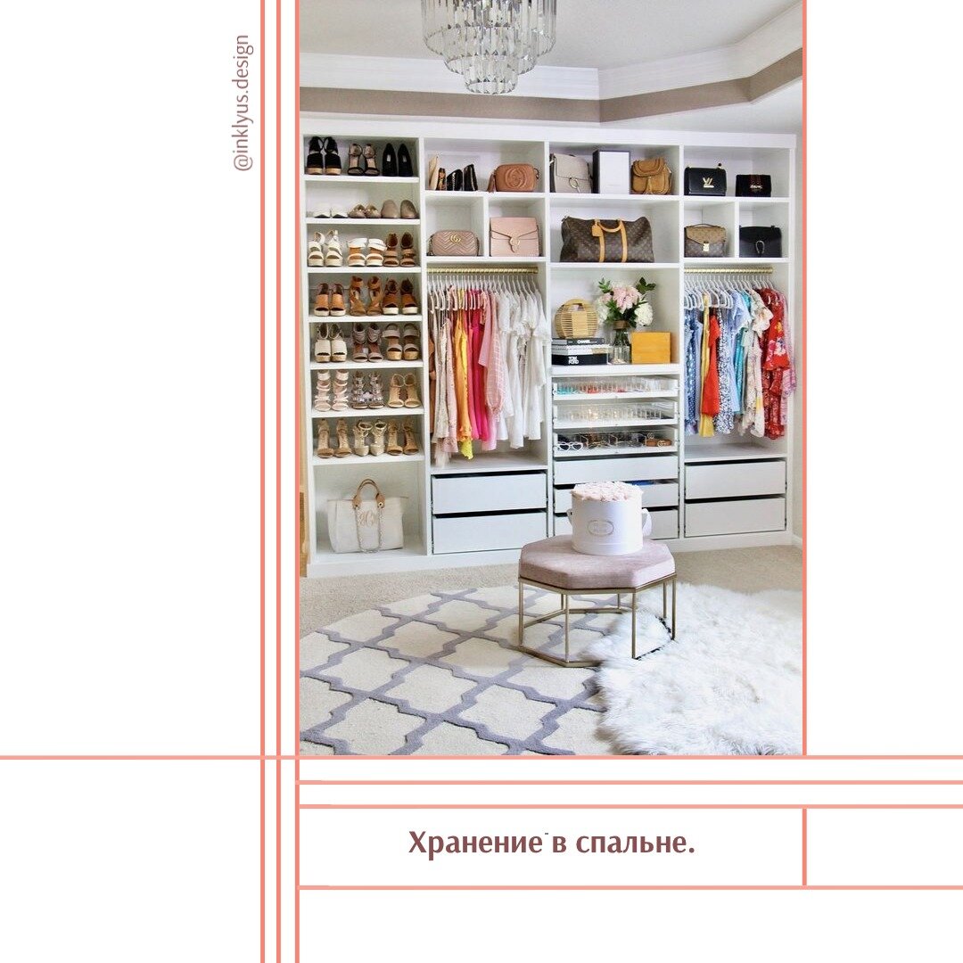 Задумались, как разместить необходимые вещи в спальне, прежде чем заказывать шкаф, предлагаю рассмотреть все варианты хранения для этого вида помещения. Основные требования к системе хранения в спальне – она не должна загромождать пространство и привлекать к себе внимание, ведь спальня — это место, где мы отдыхаем и уж точно, громоздкое пространство способствовать этому не будет. А вот и варианты: 1. Шкаф обыкновенный или необыкновенный, решать вам. Это может быть отдельно стоящий шкаф, или востренный, шкаф вокруг изголовья кровати и много других вариантов. Совет: встроенный шкаф, расположенный вдоль стены сбоку или напротив кровати, он не «съедает» пространство, а благодаря лаконичному дизайну и нейтральным оттенкам и вовсе может становиться незаметным. 2. Используем кровать по полной: хранение в изголовье кровати, под кроватью, в кровати. 3. Хранение в специальном подиуме. 4. Комоды. 5. Банкетка в изножье кровати. 6. Хранение на открытых реслингах. 7. Все виды гардеробных (откр