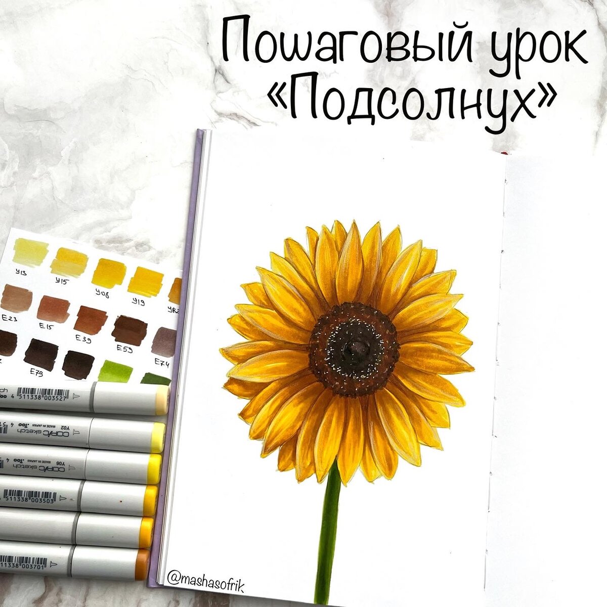 Как нарисовать подсолнух спиртовыми маркерами? Пошаговый урок