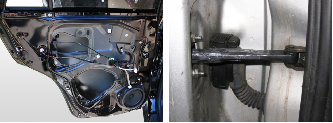 1. Снимите внутреннюю обшивку двери. Выкрутите три болта (или гайки) крепления ограничителя двери и извлеките его из двери. 2. Острым предметом или отверткой сдвиньте заглушку. 3. Переверните ограничитель двери и выньте заглушку, прижимая ограничитель к столу или полу, чтобы пружина не вылетела. Достаньте