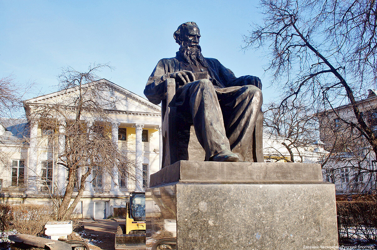 Смотрите старые фотографии: Скульптура «Мысль» во дворе дома Союза писателей на улице Воровского. 1947 год: