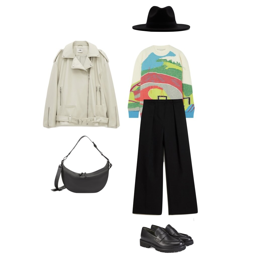 Всем привет! Сегодня я, Анна Копылова @anna.more, хочу поговорить с вами о том, как внедрить принтованные вещи в ваши образы. Тему выбрала неслучайно, т.к. знаю, что мы с вами любим покупать интересненькие вещи - с принтом, с декором, поярче да позаметнее. Покупаем, не думая, с чем их носить, а потом не знаем, что с ними делать дальше. И они остаются висеть у нас в шкафу мертвым грузом, даже не избавившись от этикеток. А это, между прочим, наши с вами деньги, которые мы заработали, потратили, а взамен ничего не получили. Если в вашем гардеробе есть такие одинокие странники, то навострите ушки, сейчас я расскажу вам, как составить с ними красивые гармоничные образы на примере принтованного свитера, включающего в себя семь разных оттенков. Поехали! Первый способ. Так как в самом принте изделия уже присутствует разные оттенки в большом количестве, то самый безопасный и понятный вариант - носить его с базовой одеждой нейтральных цветов (серый, чёрный, белый). Эти цвета хорошо сочетаютс