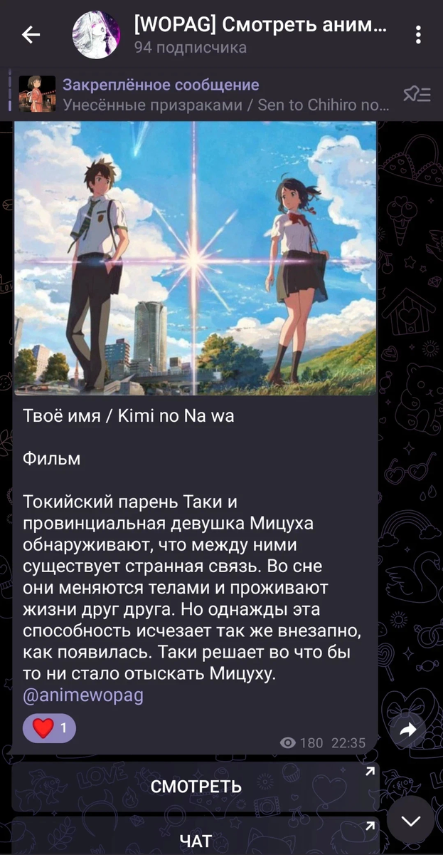 Так вот, я создал Telegram-кинотеатр "AnimeWopag" для просмотра аниме и экономии вашего интернета