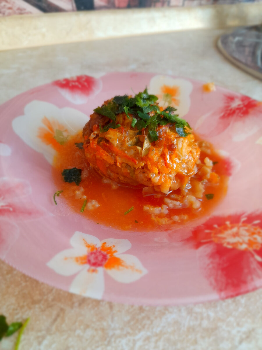 Ленивые голубцы это замечательный полноценный обед или ужин. Они хорошо пропитываются ароматным соусом, поэтому получаются нежными и мягкими! Рецепт: 1 яйцо 🥚 1 кг 🥦капусты 🥕 морковь 2шт 🧅 лук 2шт Рис 🍚 1 стакан Говяжий фарш 🥩 1 кг Зелень по вкусу. Соль🧂 🌶 перец Томатныя паста 🥫 Готовим ) Качан капусты нарубите мелко,залейте измельчённую капусты кипятком на 10минут. Рис отварить до готовности,подсолив воду. Далее делаем зажарку (лук+морковь). Соединяем все ингредиенты капусту, фарш,зажарку, рис и добавляем яйцо + специи. Слепите голубцы в виде обычных котлет, форму для запикания смажьте маслом и выложите туда голубцы Температура 200 гр запекаем 20минут . Делаем соус: Зажарка (морковь+лук) Вода 200мл Томатная паста 100гр После 20 минут достаём голубцы и залеваем соусом.Возврашаем голубцы в духовку при температуре 180-190 гр до готовности, что займёт примерно 35-40 минут. Подавайте ленивые голубцы к столу горячими с зеленью. Приятного аппетита 🤗