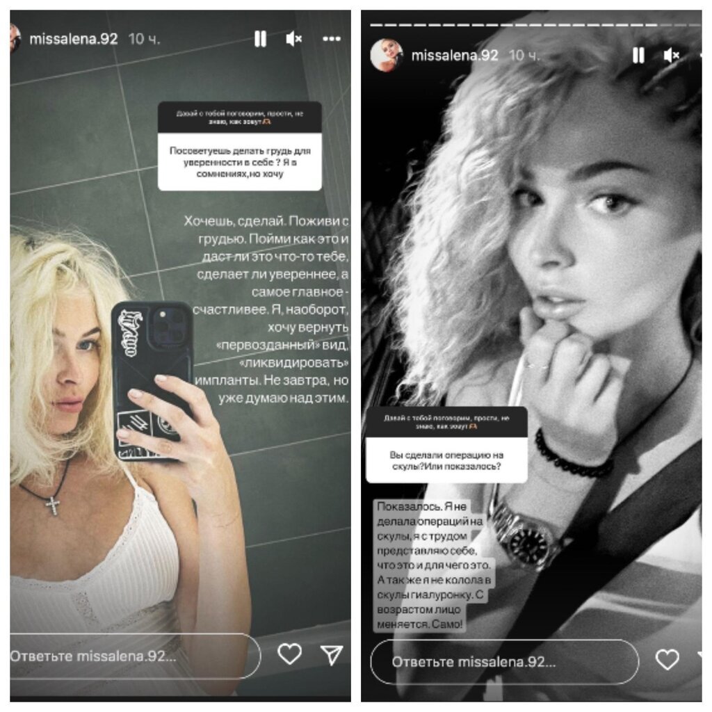 «Я хочу вернуть «первозданный» вид, ликвидировать импланты», — написала Алена в ответ на вопрос поклонницы.