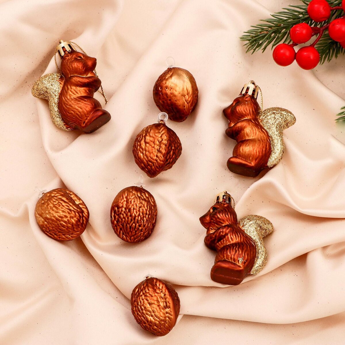 К сожалению, не во всех семьях сохранились красивые стеклянные игрушки, которыми мы украшали ёлки под Новый год. Но что, если вам хочется снова испытать те же эмоции, что в детстве? Давайте украсим ёлку похожими моделями! Наверно все помнят украшения в виде целого грецкого орешка? А вам никогда не было интересно что внутри? У нас в наборе идут ещё и белочки. Жёлуди встречались чуть реже. А у вас дома были эти милые часики, которые показывали без десяти полночь? Одного взгляда на них было достаточно для ощущения наступающего Нового года. Щелкунчик - самая новогодняя сказка. Не удивительно, что игрушки с ним были так популярны. А вы тоже недоумевали зачем в обычных круглых шарах такие необычные отверстия? Но выглядело это сказочно. Так же на ёлках часто можно было встретить всевозможные грибочки, чаще всего с золотыми ножками и красными шляпками. Шишки, бесспорно, помнит любой из нас. На каждой обязательно был белый иней, а расцветка могла меняться, в зависимости от сезона, в которым бы