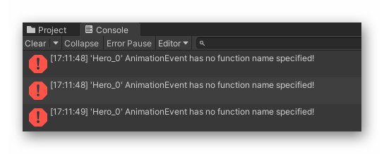 Ошибка в консоли 'AnimationEvent has no function name specified'