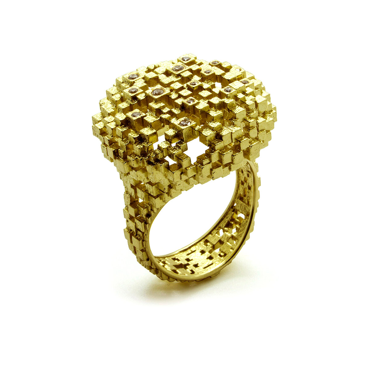 Для драгоценных металлов концепция та же: лазеры подают точные тепловые разряды на порошкообразное золото, затвердевая слой за слоем, пока не появится готовое украшение.