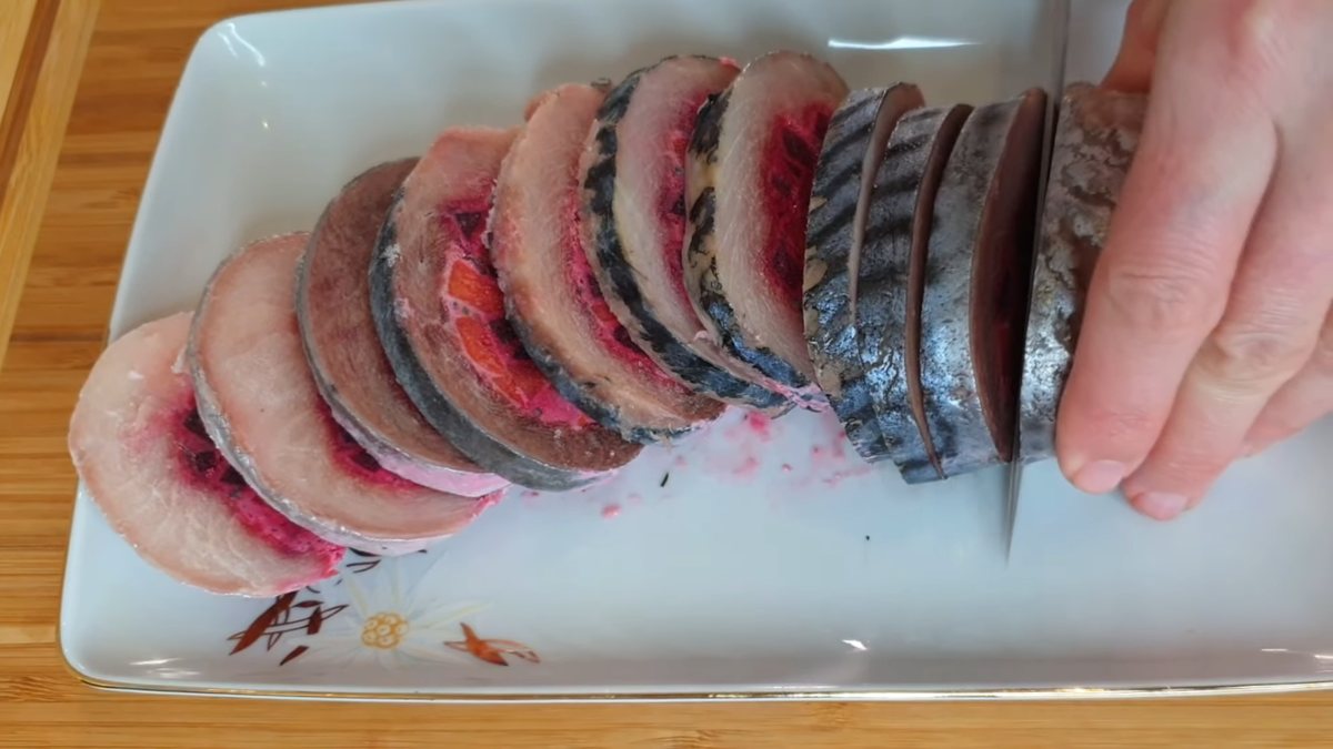 Рулет из соленой скумбрии со свекольной начинкой и сливочным сыром для праздничного стола (делюсь рецептом приготовления)