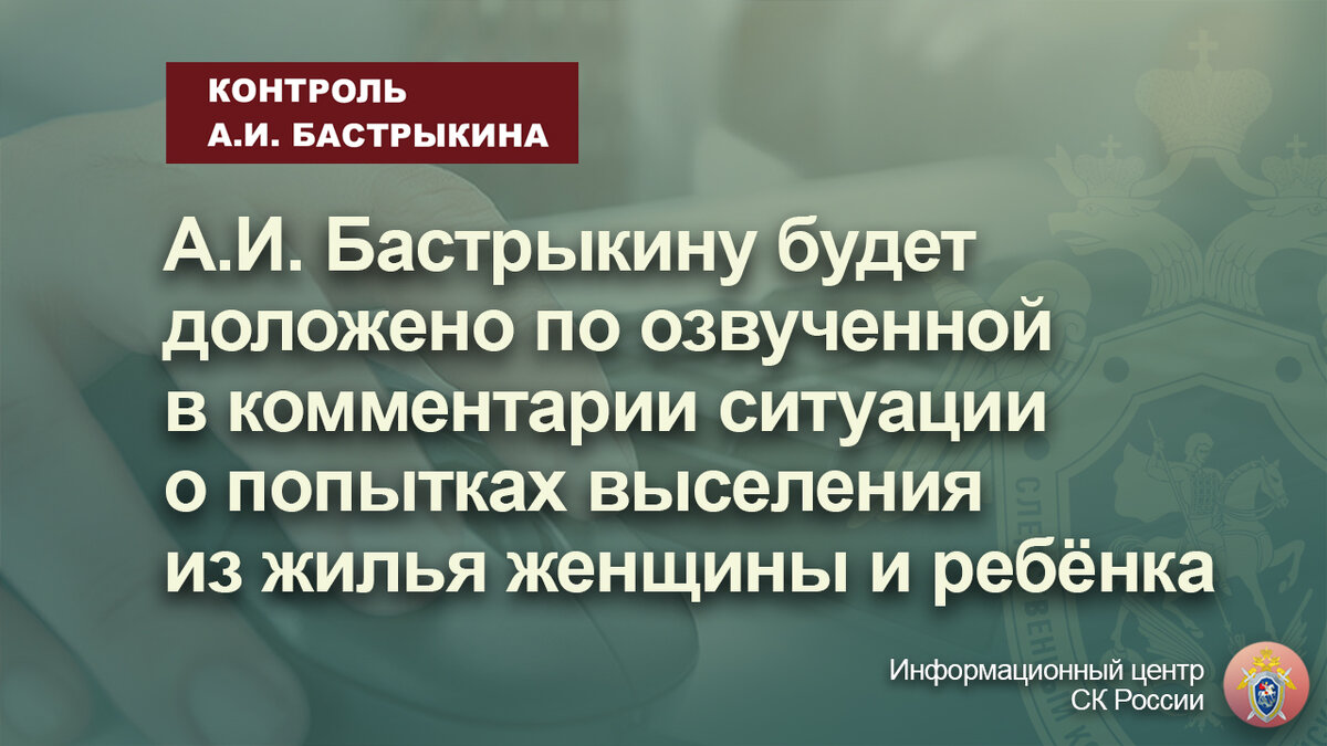 А.И. Бастрыкину будет доложено по озвученной в комментарии ситуации о попытках выселения из жилья женщины и ребёнка