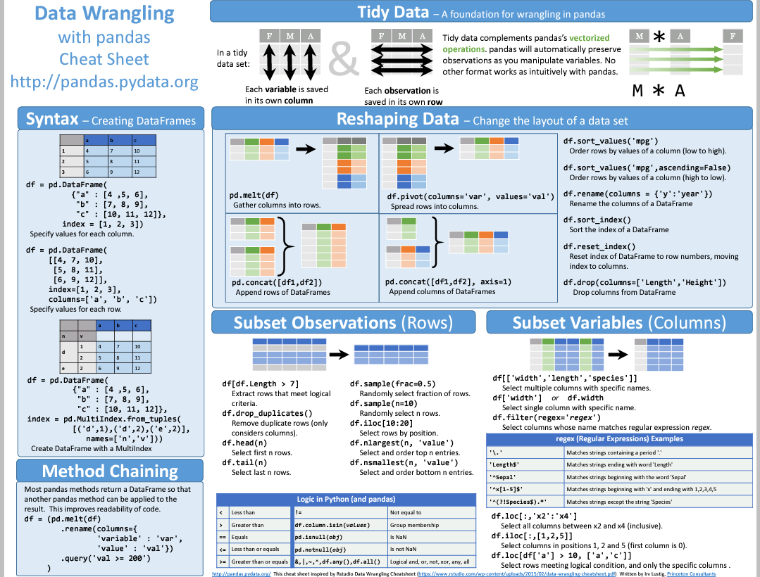Pandas — это библиотека для обработки и анализа данных на языке python. Работа pandas с данными строится поверх библиотеки NumPy, являющейся инструментом более низкого уровня. Предоставляет специальные структуры данных и операции для манипулирования числовыми таблицами и временны́ми рядами. Название библиотеки происходит от эконометрического термина «панельные данные», используемого для описания многомерных структурированных наборов информации. Официальный сайт библиотеки с документацией на англ. яз - https://pandas.pydata.org/ Шпаргалки для работы с pandas. Подписка и лайк - это повод для нас работать лучше. #pythonснуля #python3 #программированиенаpython #pandas #технологии