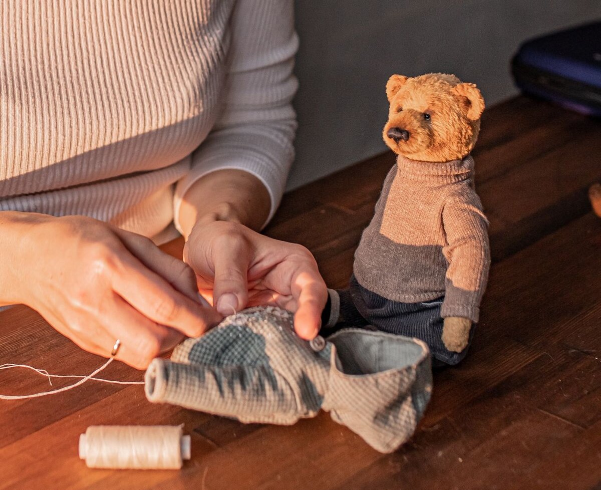 «Мишки Тедди сшитые на машинке – это не handmade!». Согласны с таким мнением? Я нет. Давайте обсудим подробнее – почему кто-то считает, что мишек Тедди нужно шить исключительно вручную? Handmade – значит, только руками? На самом деле шить мишку вручную или на машинке – дело мастера. Игрушка в технике Тедди не предполагает чисто ручного сшивания. На фабрике Штайф, где и родился самый первый Тедди, их шили на машинках в том числе. В чём здесь спор? Я вижу это так: Вот почему кто-то считает, что важно шить именно вручную. То есть буквально только руками. Одну игрушку, а не сразу много. НО… То, что сшито на машинке, я считаю такой же ручной работой. Машинка же не шьёт без мастера. Как кастрюлька не варит борщ за хозяйку. Или фотоаппарат не сделает за фотографа классный кадр, если не выставить вручную свет, не найти нужный ракурс и так далее. Думаю, что аналогия понятна. Да, машинка – это инструмент. Иголка с ниткой по своей сути тоже. При этом кроит рукодельница вручную, выворачивает дет